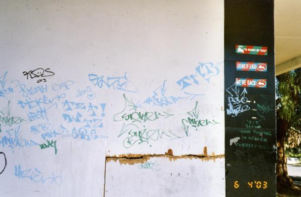 You will see the graffiti tags "LRA", "Lexo